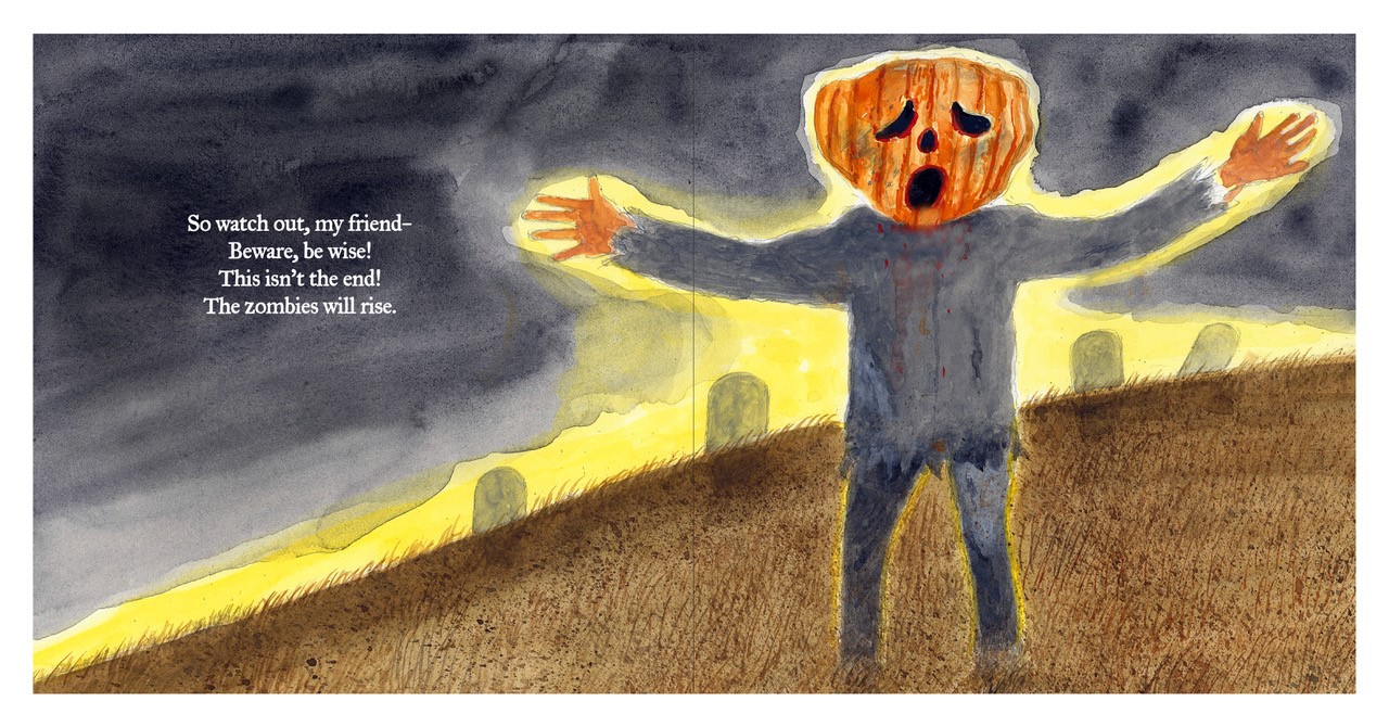 In propulsive rhyming verse and spooky watercolor and gouache illustrations ("mixed with digital"), readers are introduced to the participants in a parade of zombies with jack-o'-lanterns for heads-Slime-Faces Sumpkin, Ghoul-Eyed Gumpkins, Crush-Headed Cumpkins, etc.-who march through the countryside on Halloween night. They return to the pumpkin graveyard at dawn, but "watch out, my friend, / beware, be wise! / This isn't the end-- / the zombies will rise." Burleigh and Minor's latest collaboration (Breaking Waves and Wilbur Wright Meets Lady-Liberty, both rev. 5/21) is perfect for young readers who enjoy a bit of "shiver and quiver" in their picture books.