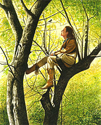 Synopsis As a young man, John James Audubon, the renowned early American woodsman and artist, had to make a choice between following his fathers dreams for him and discovering his own special destiny. In this beautifully conceived book, Robert Burleigh intersperses quotations taken directly from Audubons journals with an imaginary conversation in which Audubon tells his father why he has chosen to forgo the ordinary life of a shopkeeper and instead live out in nature to develop his art and his relationship with the world. Illustrated not only with sumptuous images by Wendell Minor, but with actual drawings by Audubon himself, this book will appeal to Audubon fans of all ages. Reviews From PUBLISHERS WEEKLY - Having previously written about Thoreau, Lindbergh and Babe Ruth, Burleigh continues his series of biographies of famous men in this poetic picture book about John James Audubon (1785-1851), sumptuously illustrated by Minor. The volume begins with advice to Audubon from his father: `Be a store owner, his father said./But John went to the woods instead. As an authors note explains, what follows is Burleighs imagined response, penned by Audubon in a letter to his father, in an ornate 19th-century style with rhymed couplets: O father, dear Father, to me it seems/No one can fail who holds to his dreams. The flow of the narrative parallels quotations from the naturalists journals, just as Audubons own paintings sometimes appear as spot art to mirror Minors illustrations. Author and artist present Audubon as both idealistic and gentle, and though he doesnt save every cent as his father wants him to, he ends up saving in his artwork the disappearing world he observes (And I must paint it all because/We need this memory of what was). His philosophy wafts through the volume like a summer breeze. Minor breathtakingly captures a landscape with a blue heron in the marsh as easily as a close-up of a dying dove, alongside a poem deft and sure. Nature-lovers, and budding artists will want to know about this one. Awards 2003 NSTA/CBC Outstanding Science Trade Books for Children You may choose your favorite Internet bookseller below or use the "Book Web" Link to find a bookseller near you. The Hickory Stick Bookshop Amazon Barnes And Noble Book Web |